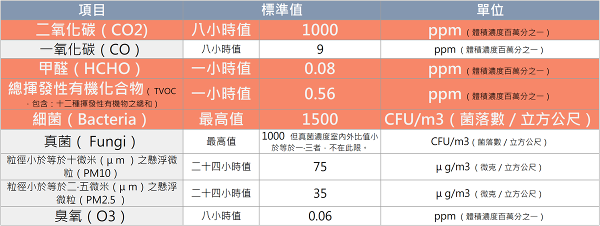 (圖/室內空氣品質法定標準)